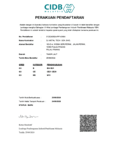 Established in 2007, DJ Metal Tech Sdn Bhd specializes in safe, reliable, and fully compliant scaffolding services and ironwork solutions for factories and industrial sites across Northern Malaysia. Backed by a dedicated team of over 200 trained professionals and equipped with industry-grade machinery, we prioritize strict adherence to safety standards, timely project execution, and site-specific customization. As a CIDB-certified contractor, we work closely with safety officers and project managers to ensure all scaffolding structures meet regulatory requirements and enhance on-site safety throughout every phase of the project